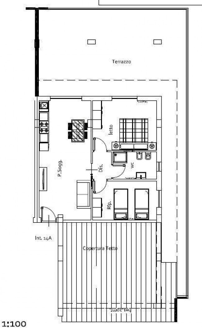 Il punto di forza dell'Appartamento è sicuramente il grande terrazzo di oltre 70 mq esposto ad est, da cui poter ammirare una splendida vista sul mare e sul litorale.