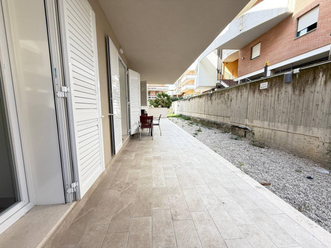 Situato al piano terra di un condominio moderno con ascensore, l'immobile si distingue per i suoi ambienti ampi e funzionali: un luminoso soggiorno con cucina a vista, due camere da letto, due bagni e un giardino privato, perfetto per cene all'aperto, momenti di relax o come spazio sicuro per i bambini. Un vero valore aggiunto? L'accesso diretto su Viale Mazzini, che permette di vivere appieno la zona mare con tutta la comodità di avere negozi, ristoranti e servizi a portata di mano.