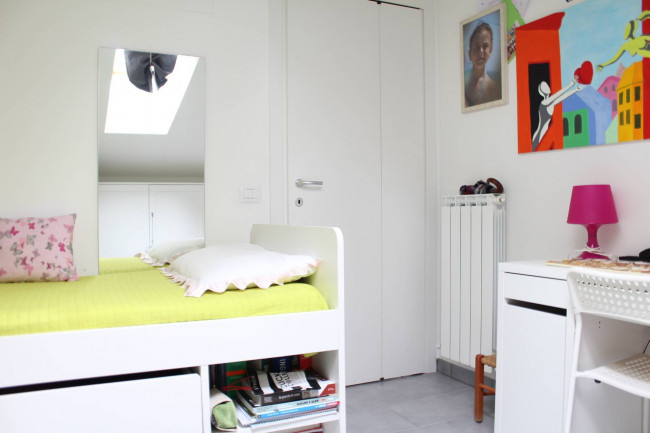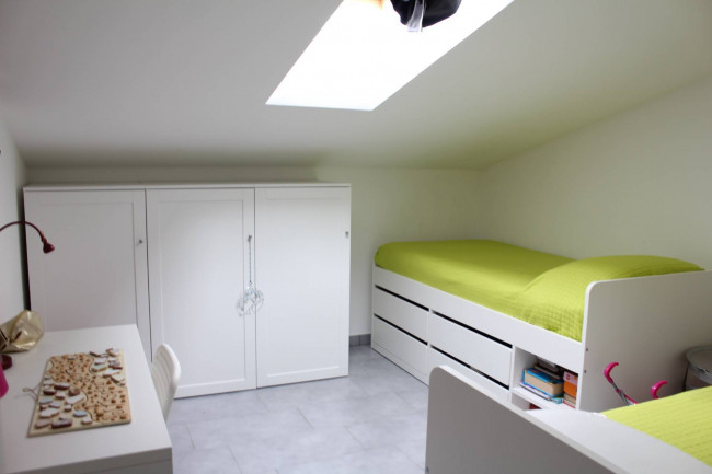 La zona notte è composta da tre camere da letto, tutte luminose e ben dimensionate, e due bagni moderni e finemente rifiniti, di cui uno a servizio della camera matrimoniale entrambi con box doccia.