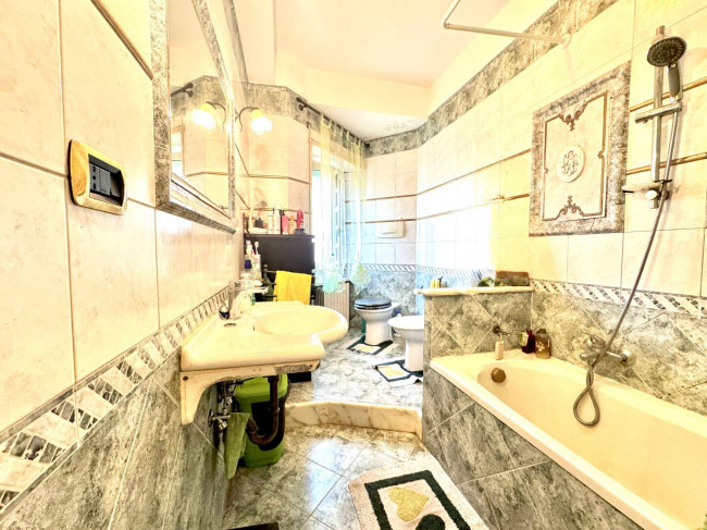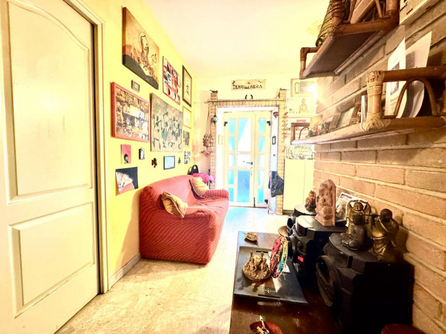 In palazzina costruita negli anni 70 la soluzione è cosi composta: cucina abitabile, soggiorno, due camere da letto entrambe matrimoniali, un bagno con vasca e finestra , un bagno in camera con doccia e finestra ed una corte esterna pavimentata e in parte giardino di ca. 94 mq . Autorimessa di c.a. 24 mq .